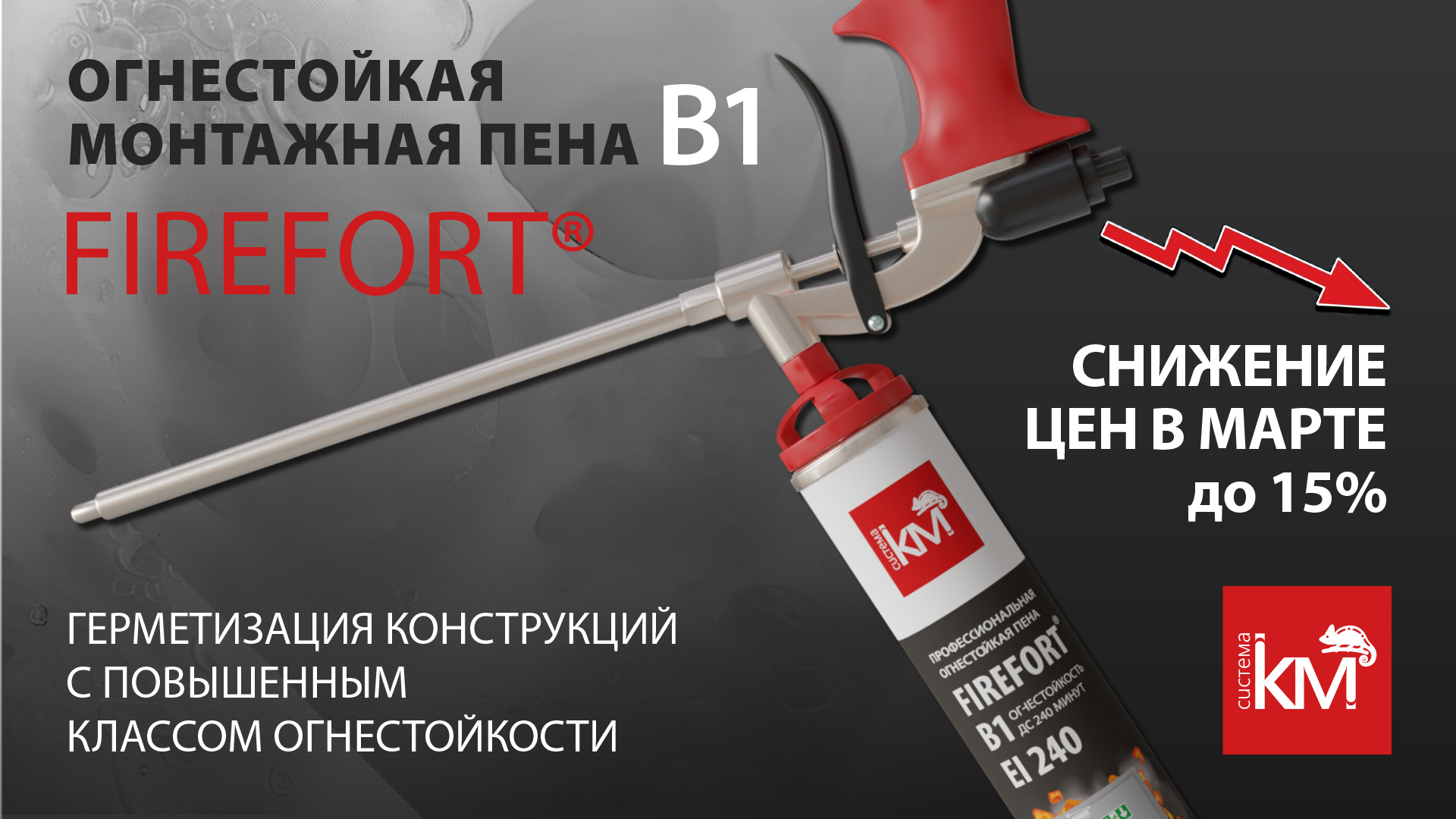 Сочетать надежную огнезащиту с разумной экономией — реально. В марте на монтажную пену FIREFORT® действует специальное предложение — выгода до 15%. Проверенное решение по оптимальной цене.
